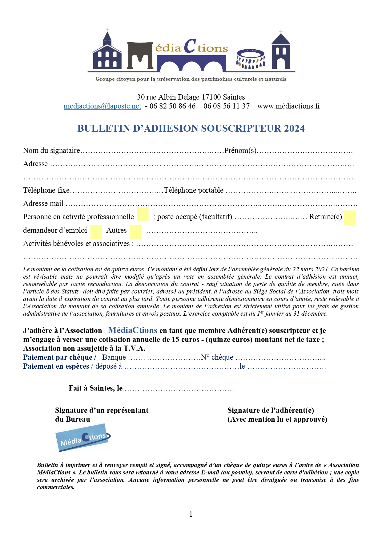 Adhérez en nous retournant le bulletin d'adhésion avec un chèque de 15.00 €