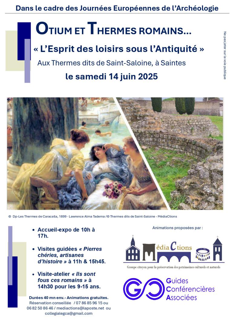 Nous le présenterons lors des "Journées Européennes de l’ Archéologie", car nous serons présents le samedi 14 juin 2025 sur le site des thermes dits de Saint-Saloine, avec un stand accueil et l’organisation de visites guidées gratuites. Cette journée-là, un atelier pour enfants sera tout spécialement organisé.( renseignements et détails à la rubrique évènements).