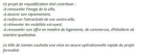 Force est de constater que le projet Linkcity ne répond que très partiellement aux objectifs posés. C'est une évidence que les investissements cités n'apportent rien à l'image de la ville, à son rayonnement, à l'attraction de son centre ville, aux mobilités est-ouest. Il ne suffit pas de répéter que " je crois en ce projet parce que c’est un beau projet, c’est un très beau projet, je me réjouis d’avance du fait que les saintais seront fiers de ce beau projet ", vos administrés n'y adhèrent pas.